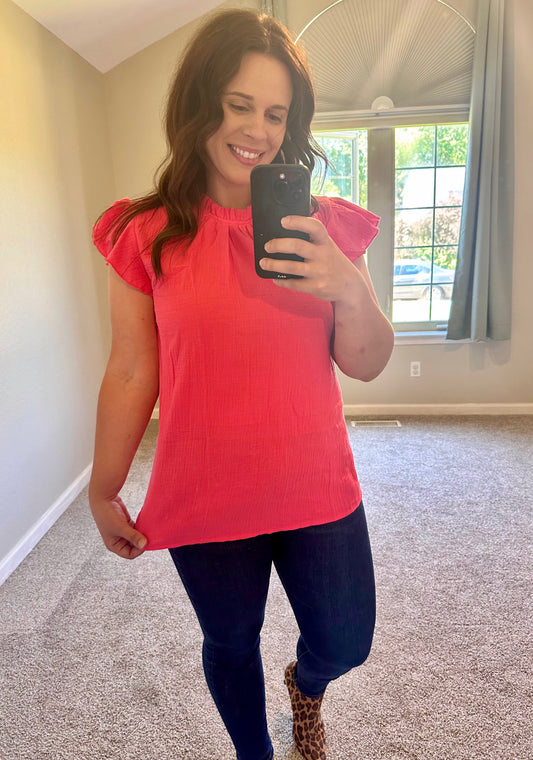 Ashley V Neck Flutter Sleeve Blouse
