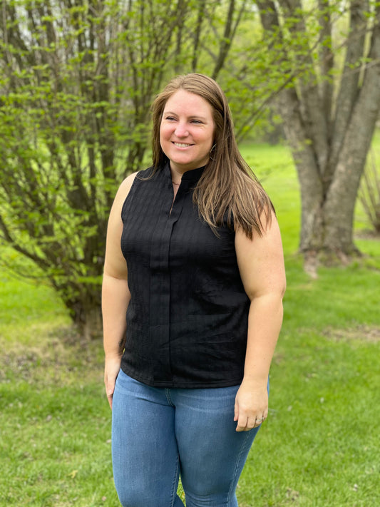 Lattice Textured Split Neck Tank Top