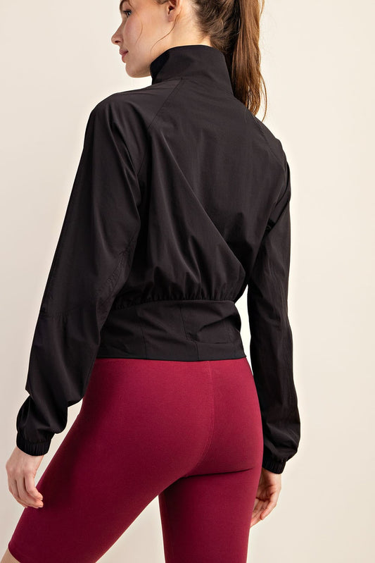 Split Neck Smocked Cuffs Bishop Sleeve Blouse